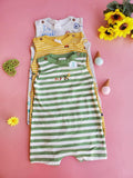 This adorable romper has a pure cotton construction with a comfortable sleeveless design, a crinkle textured finish, a button-up frontwhih gives ultimate comfort to your lil baby