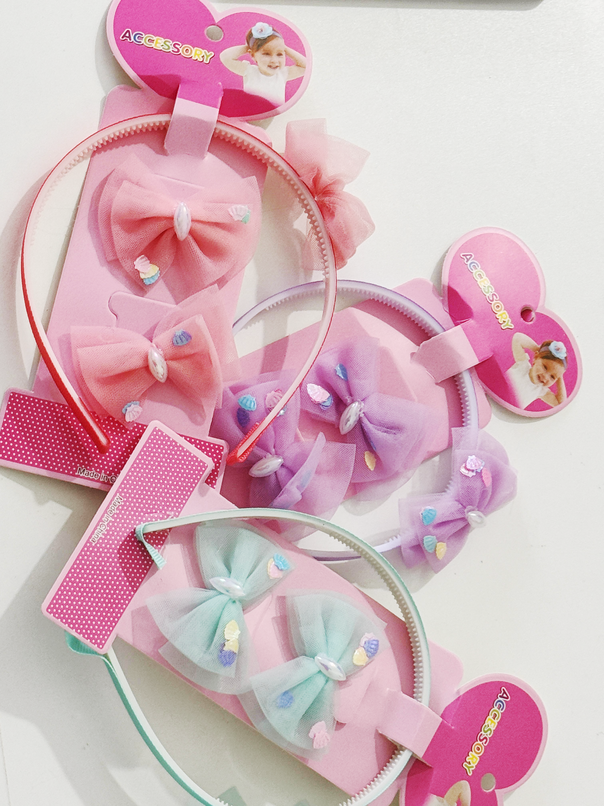 Comes with hairband and two hair clips ideal to style up your lil baby girl